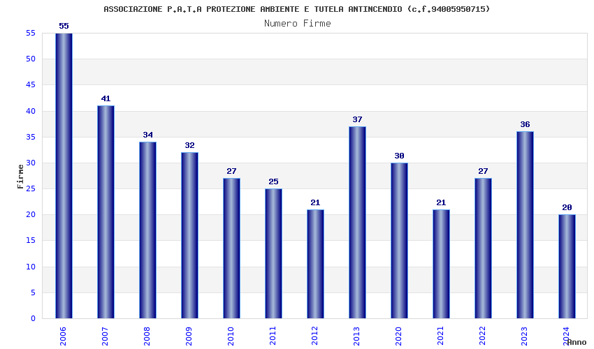 | Anno | Firme | Importi | Media | Naz. | Reg. | Prov. | Comu. |