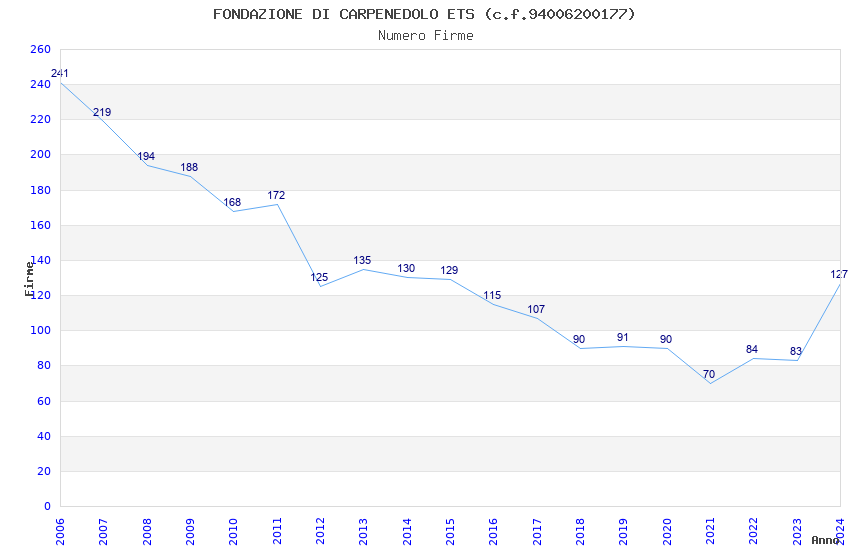 | 2023 | 83 | 3.618,03 | 43,59 | 14.771 | 3.263 | 403 | 2 |
