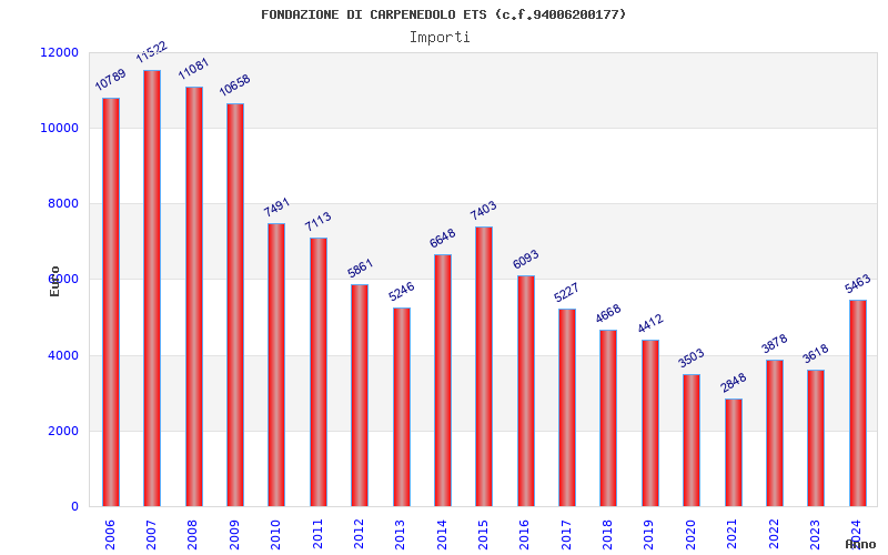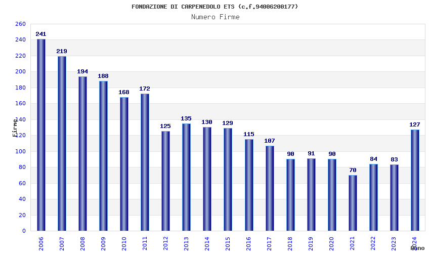 | Anno | Firme | Importi | Media | Naz. | Reg. | Prov. | Comu. |