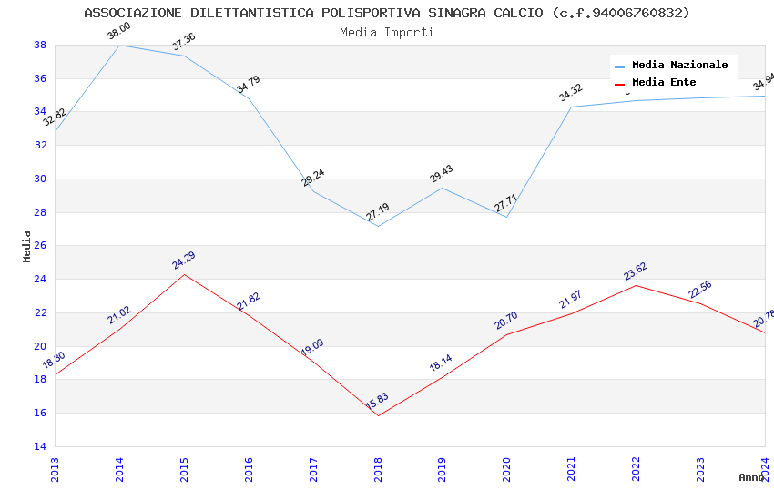 | Anno | Firme | Importi | Media | Naz. | Reg. | Prov. | Comu. |