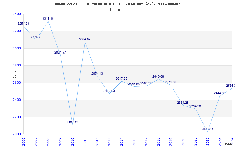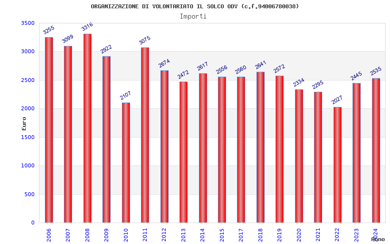 | Anno | Firme | Importi | Media | Naz. | Reg. | Prov. | Comu. |