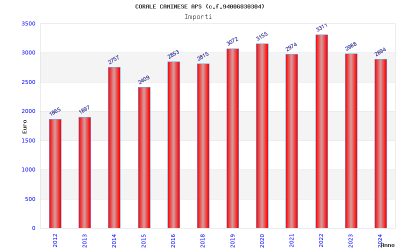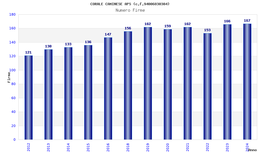 | Anno | Firme | Importi | Media | Naz. | Reg. | Prov. | Comu. |