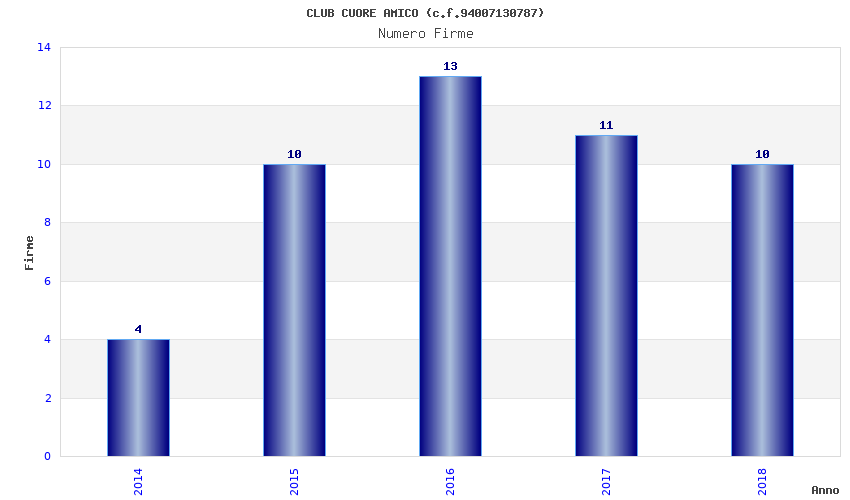 | Anno | Firme | Importi | Media | Naz. | Reg. | Prov. | Comu. |