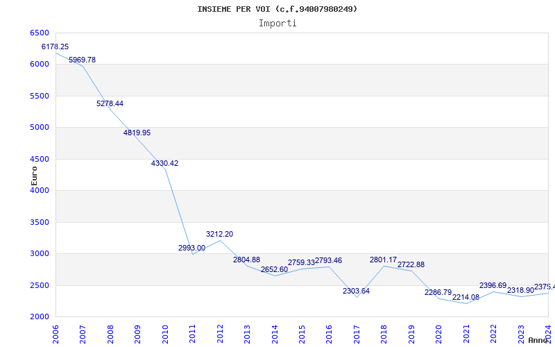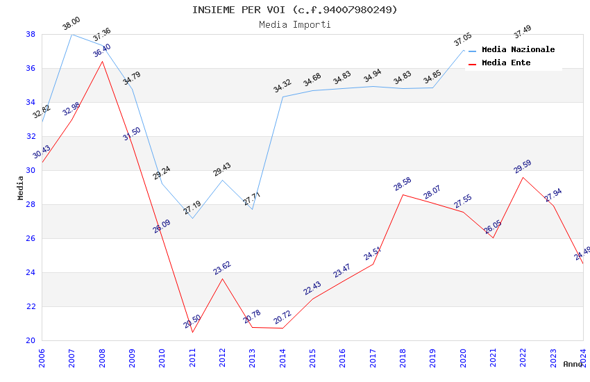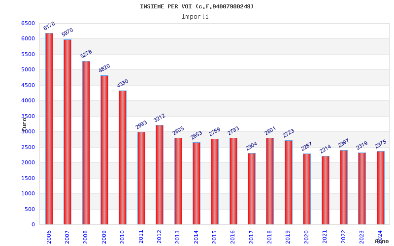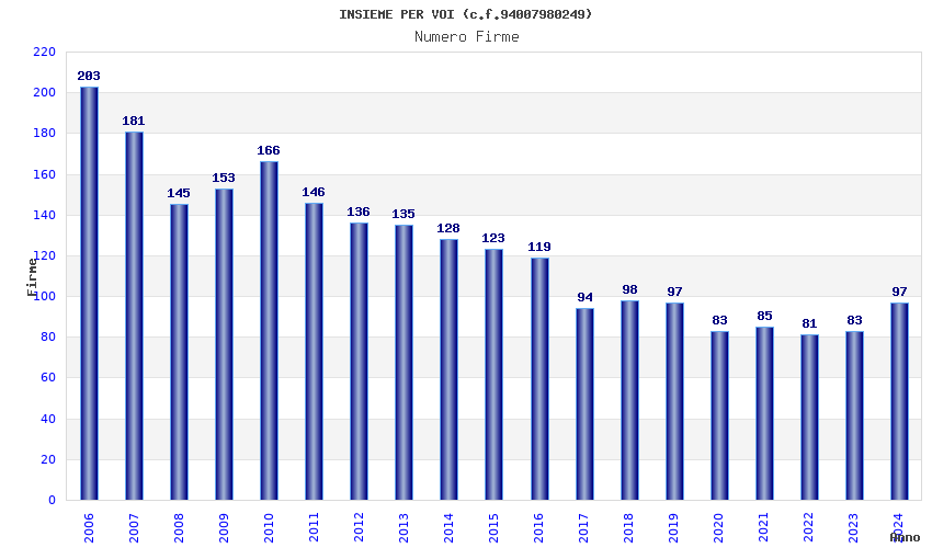 | Anno | Firme | Importi | Media | Naz. | Reg. | Prov. | Comu. |