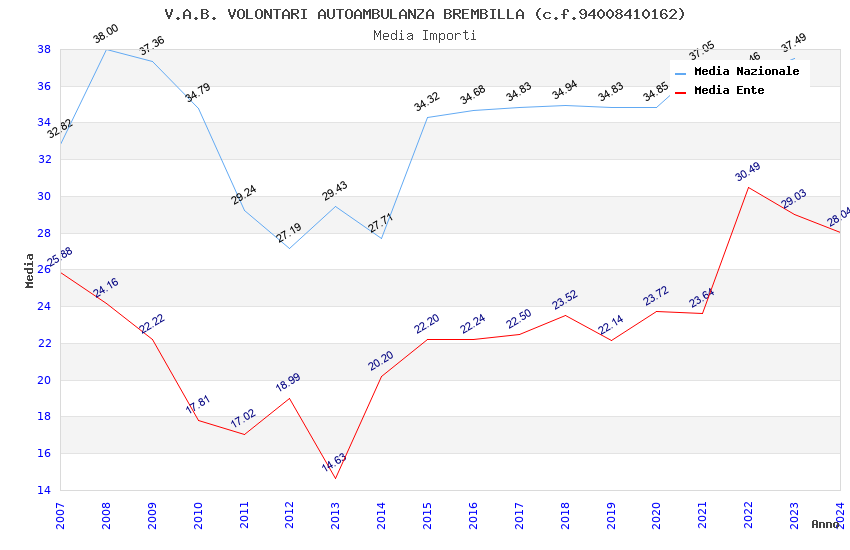 | Anno | Firme | Importi | Media | Naz. | Reg. | Prov. | Comu. |