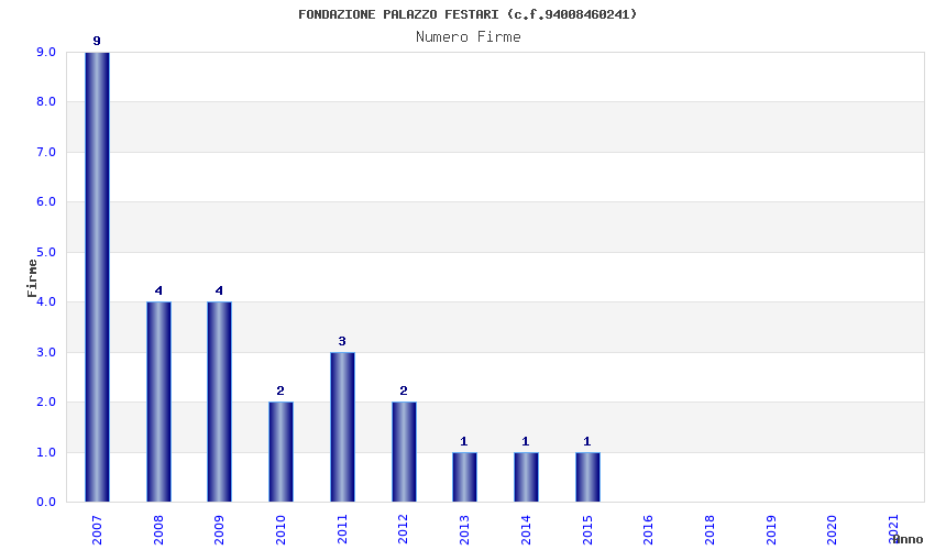 | Anno | Firme | Importi | Media | Naz. | Reg. | Prov. | Comu. |