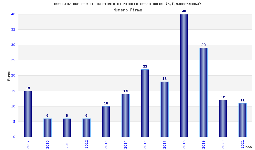 | Anno | Firme | Importi | Media | Naz. | Reg. | Prov. | Comu. |
