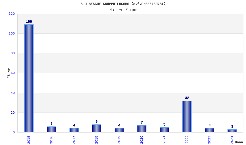 | Anno | Firme | Importi | Media | Naz. | Reg. | Prov. | Comu. |