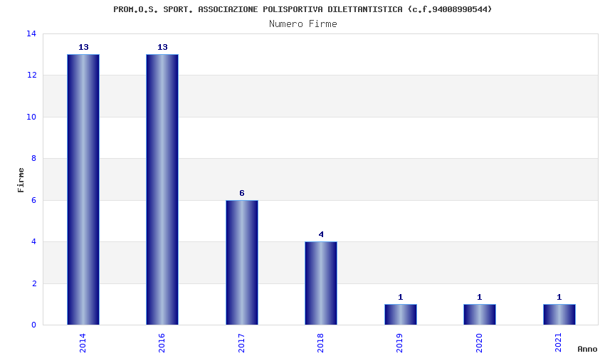 | Anno | Firme | Importi | Media | Naz. | Reg. | Prov. | Comu. |
