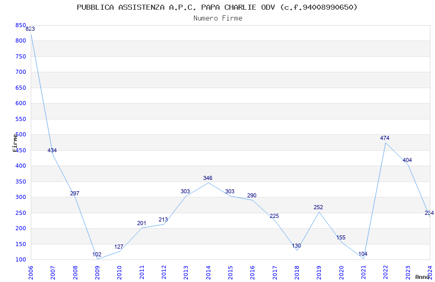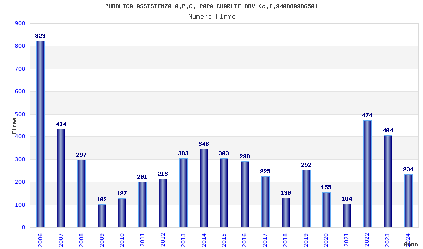 | 2006 | 823 | 15.718,58 | 19,10 | 2.496 | 115 | 20 | 1 |