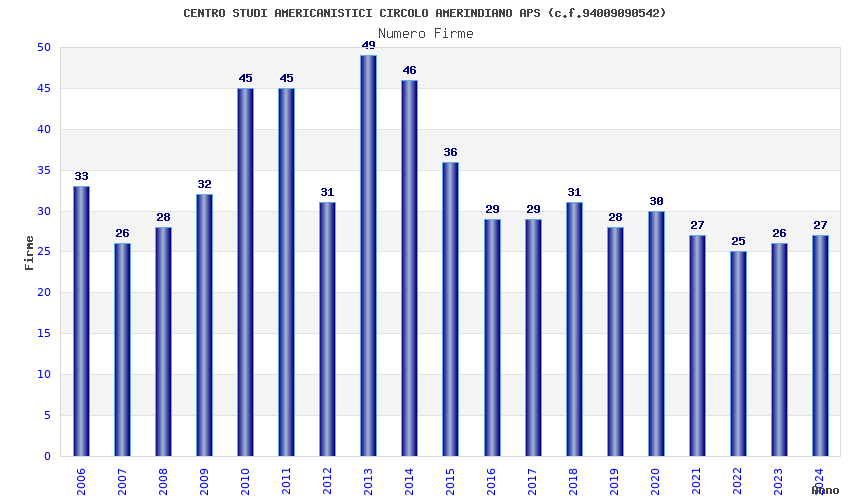 | Anno | Firme | Importi | Media | Naz. | Reg. | Prov. | Comu. |
