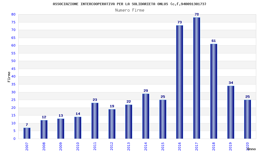 | Anno | Firme | Importi | Media | Naz. | Reg. | Prov. | Comu. |