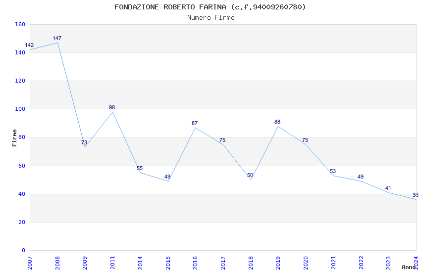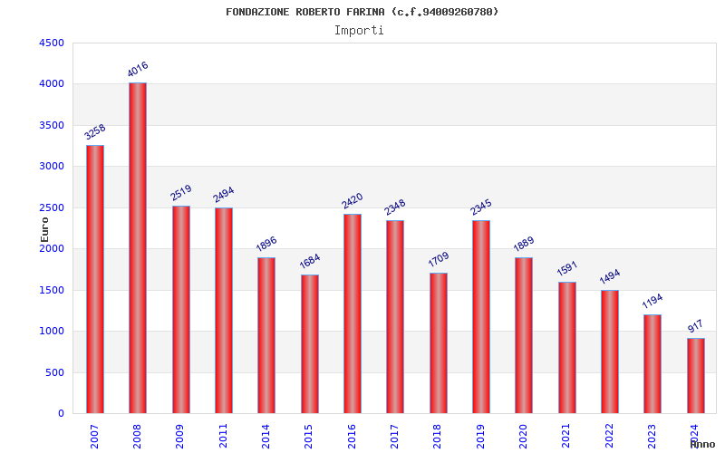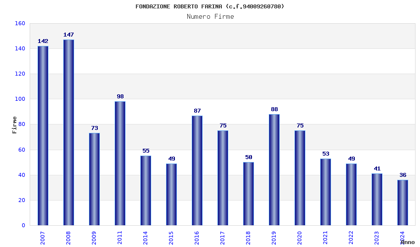 | Anno | Firme | Importi | Media | Naz. | Reg. | Prov. | Comu. |