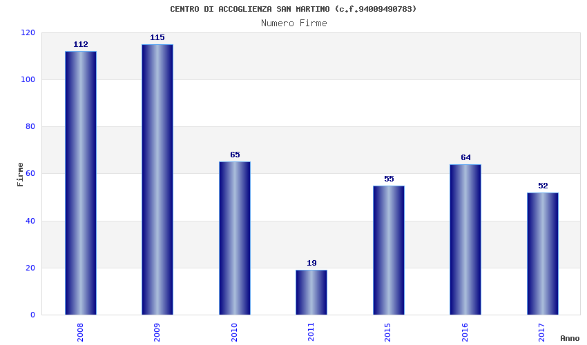 | Anno | Firme | Importi | Media | Naz. | Reg. | Prov. | Comu. |