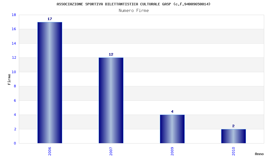 | Anno | Firme | Importi | Media | Naz. | Reg. | Prov. | Comu. |