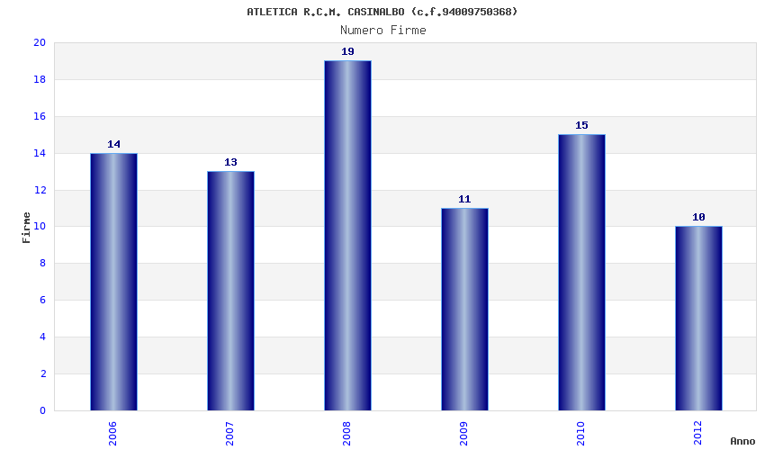| Anno | Firme | Importi | Media | Naz. | Reg. | Prov. | Comu. |