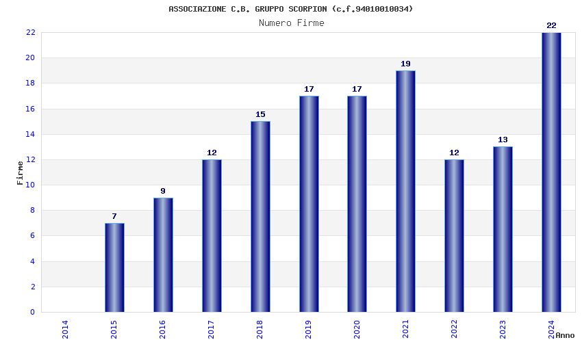 | Anno | Firme | Importi | Media | Naz. | Reg. | Prov. | Comu. |