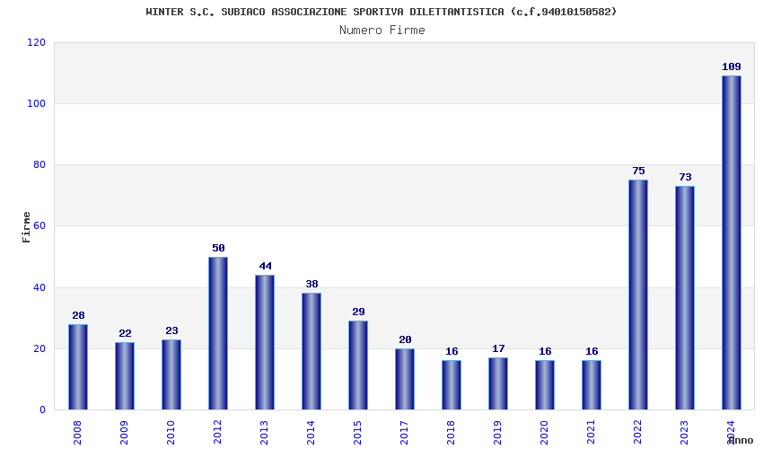 | 2024 | 109 | 4.552,04 | 41,76 | 11.812 | 1.385 | 1.197 | 2 |