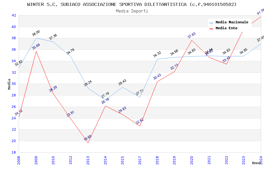 | Anno | Firme | Importi | Media | Naz. | Reg. | Prov. | Comu. |