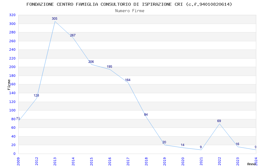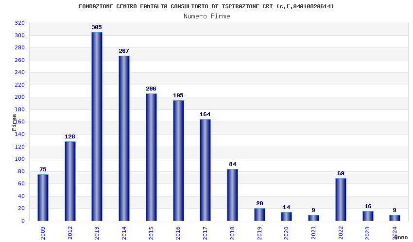 | Anno | Firme | Importi | Media | Naz. | Reg. | Prov. | Comu. |