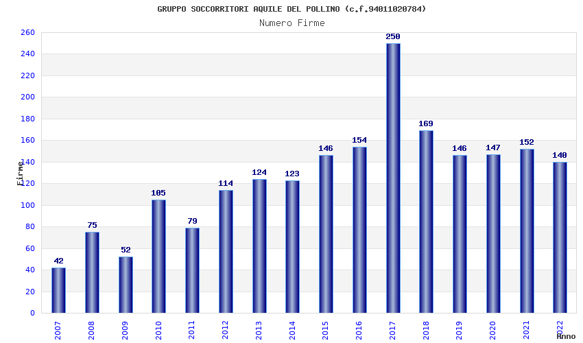 | 2017 | 250 | 4.774,92 | 19,10 | 11.594 | 246 | 92 | 1 |