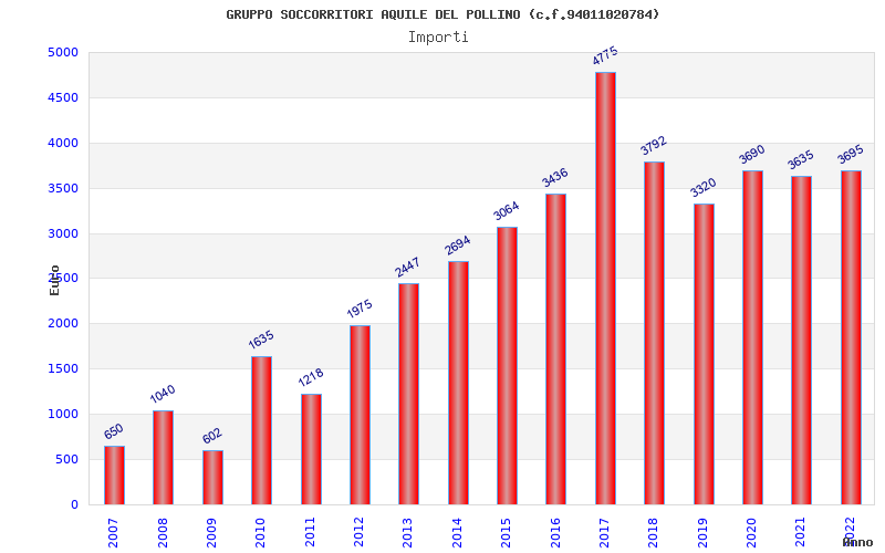 | Anno | Firme | Importi | Media | Naz. | Reg. | Prov. | Comu. |
