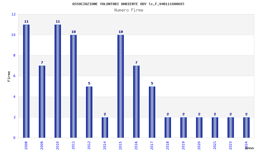 | Anno | Firme | Importi | Media | Naz. | Reg. | Prov. | Comu. |