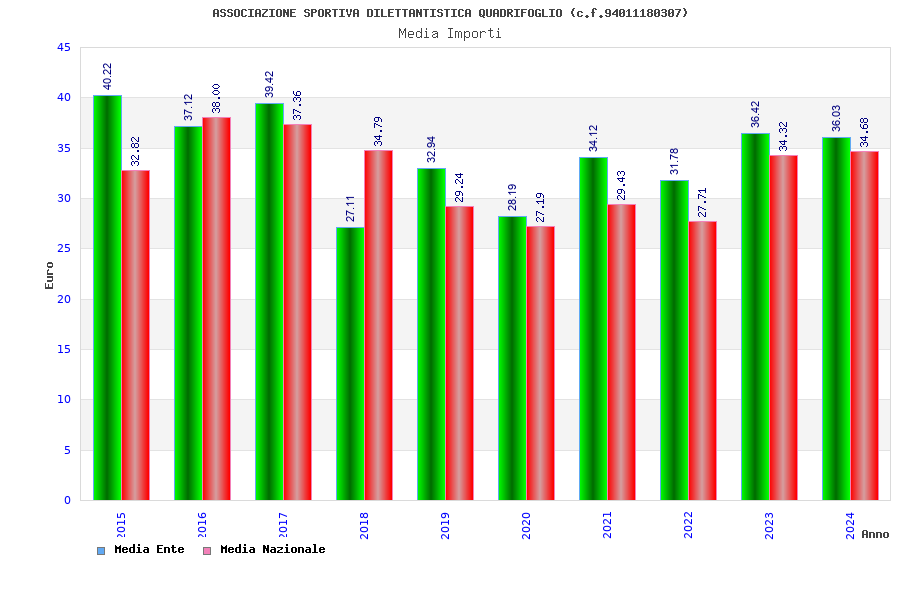 | Anno | Firme | Importi | Media | Naz. | Reg. | Prov. | Comu. |
