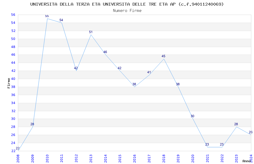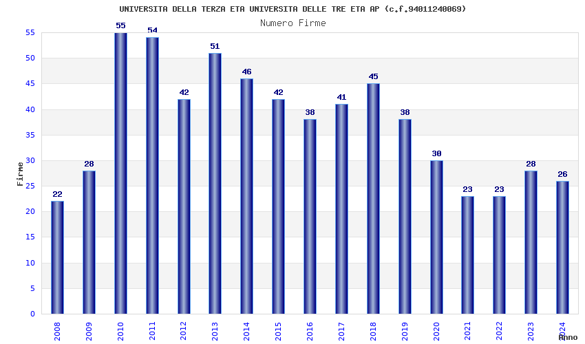 | Anno | Firme | Importi | Media | Naz. | Reg. | Prov. | Comu. |