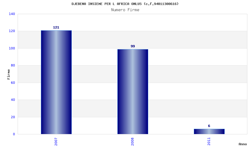 | Anno | Firme | Importi | Media | Naz. | Reg. | Prov. | Comu. |
