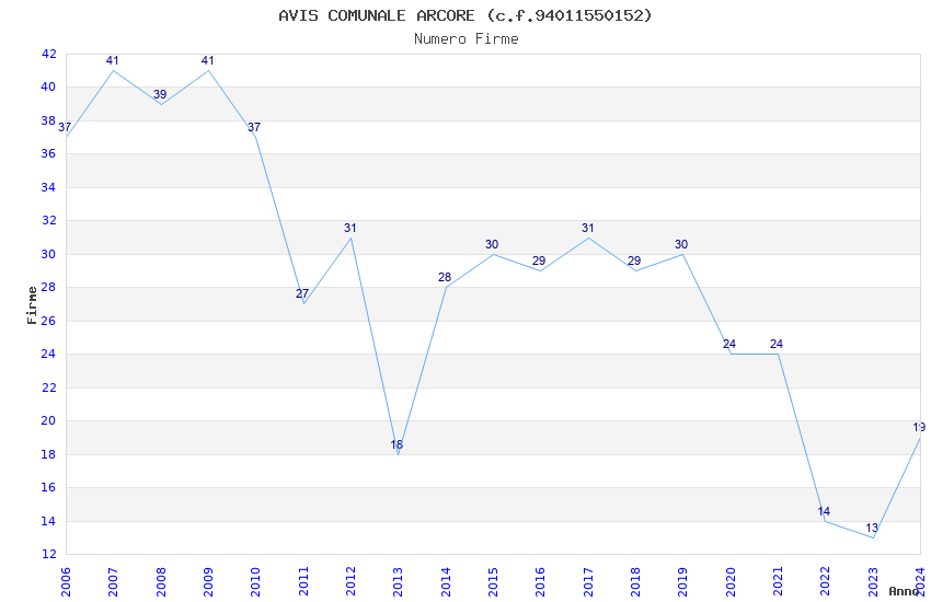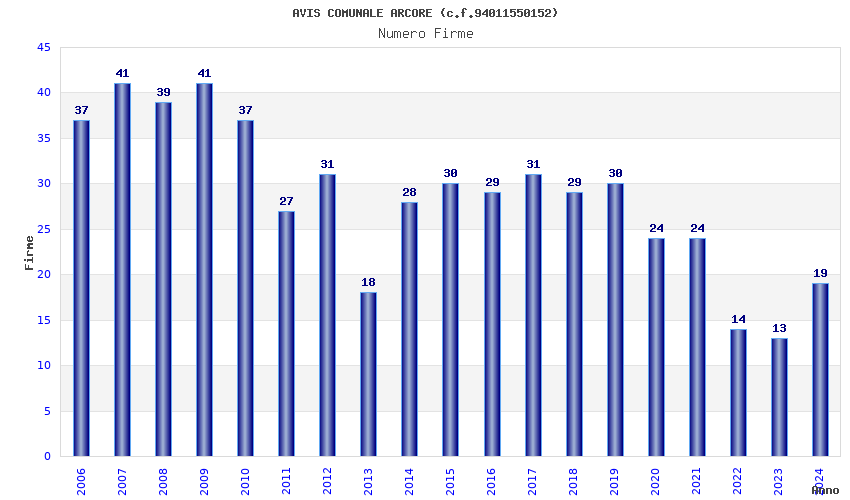 Anno Firme Importi Media Naz. Reg. Prov. Comu.