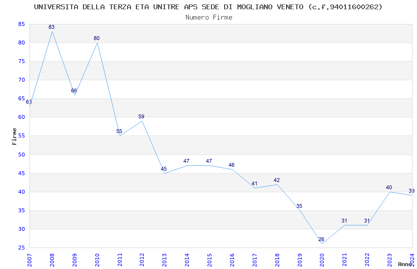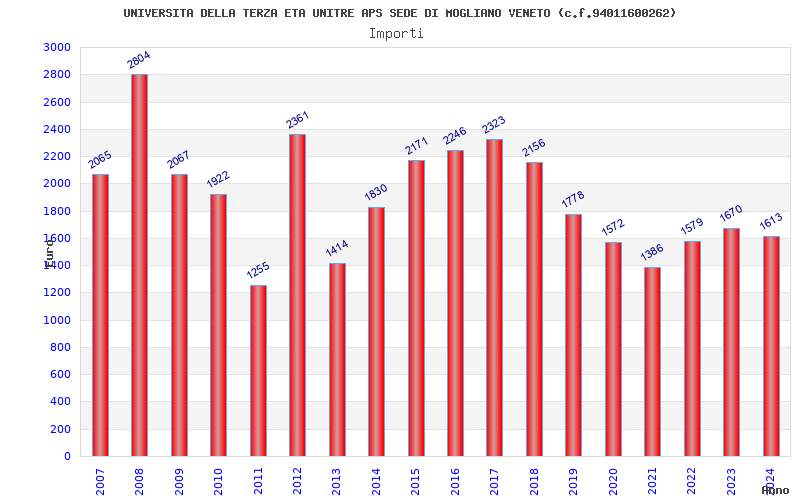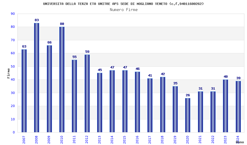 | Anno | Firme | Importi | Media | Naz. | Reg. | Prov. | Comu. |
