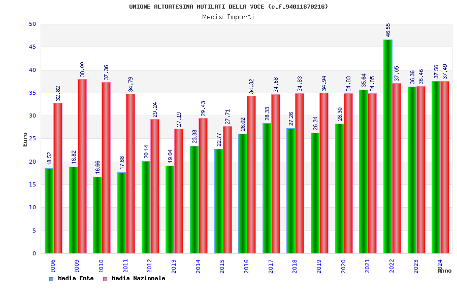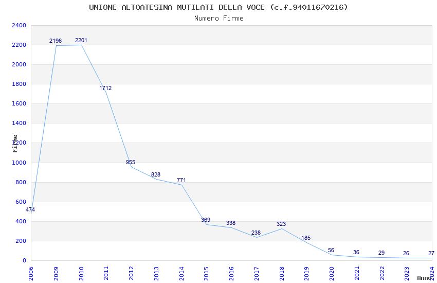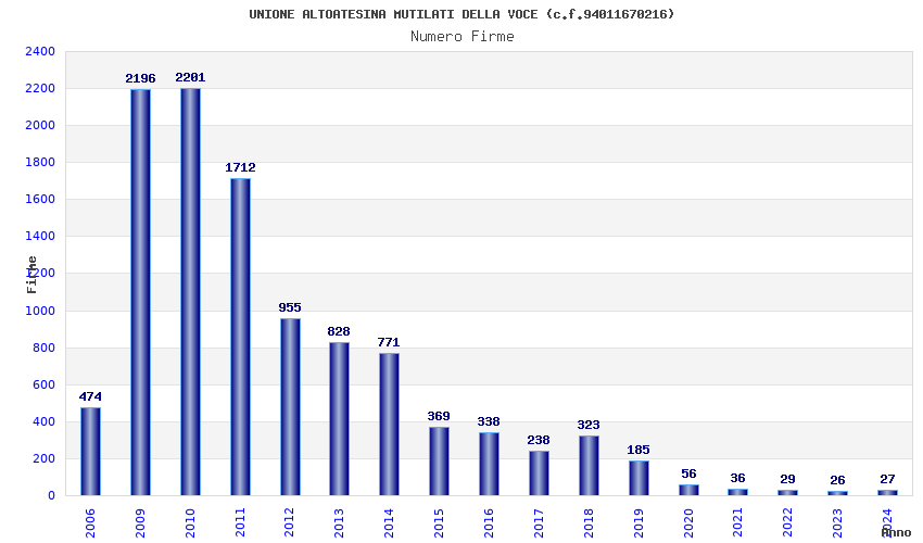 | Anno | Firme | Importi | Media | Naz. | Reg. | Prov. | Comu. |