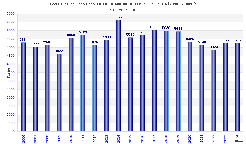 | Anno | Firme | Importi | Media | Naz. | Reg. | Prov. | Comu. |