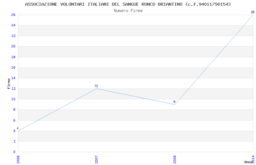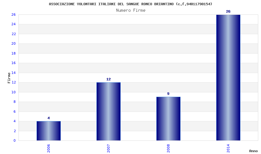 | Anno | Firme | Importi | Media | Naz. | Reg. | Prov. | Comu. |
