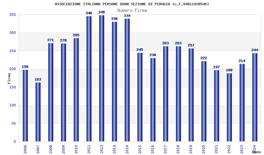 | Anno | Firme | Importi | Media | Naz. | Reg. | Prov. | Comu. |
