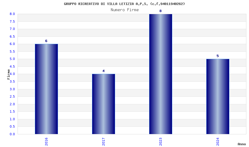 | Anno | Firme | Importi | Media | Naz. | Reg. | Prov. | Comu. |