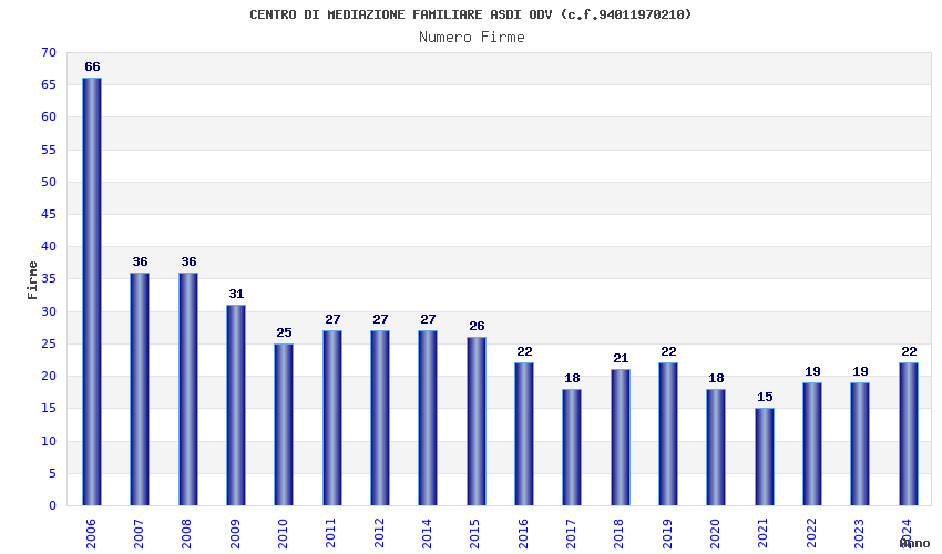 | Anno | Firme | Importi | Media | Naz. | Reg. | Prov. | Comu. |