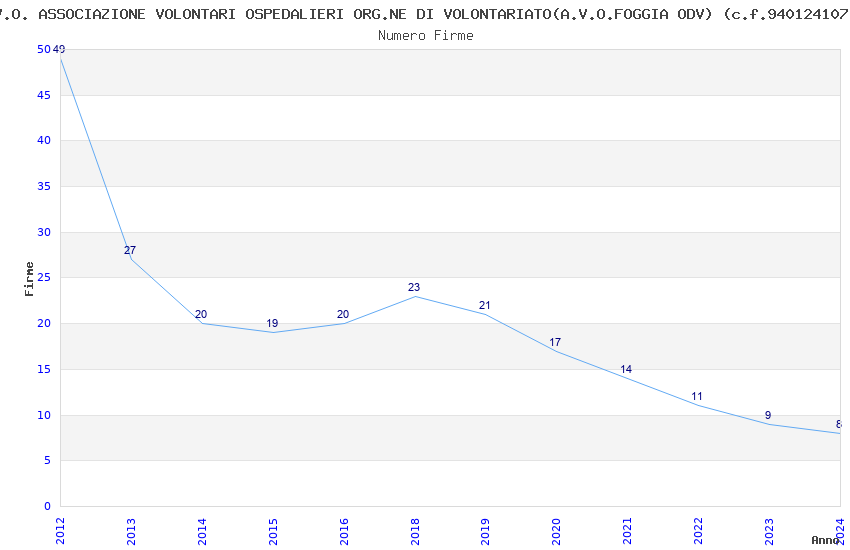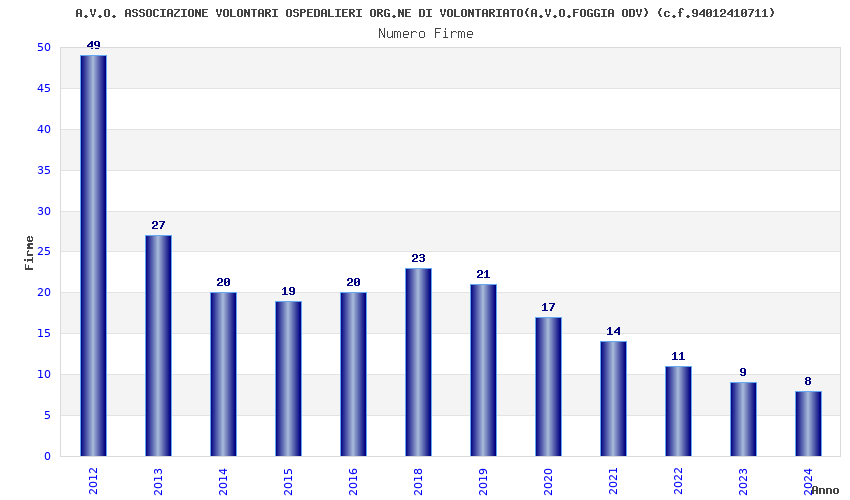 | Anno | Firme | Importi | Media | Naz. | Reg. | Prov. | Comu. |