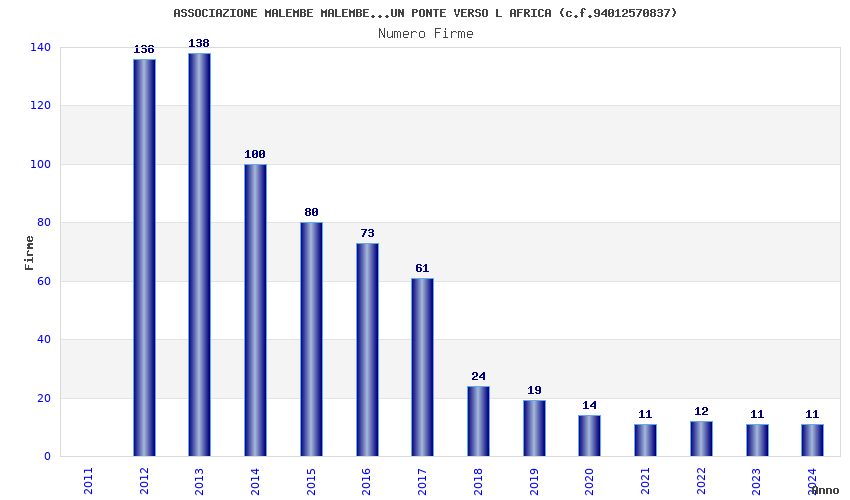 | Anno | Firme | Importi | Media | Naz. | Reg. | Prov. | Comu. |