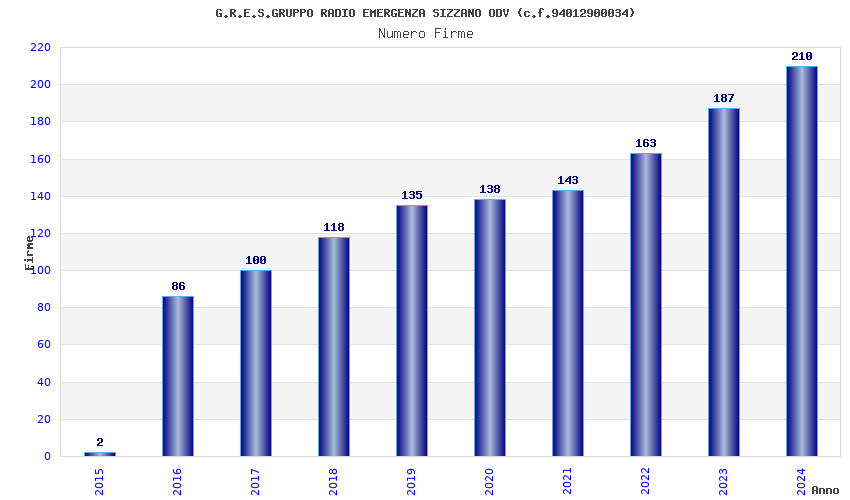 | Anno | Firme | Importi | Media | Naz. | Reg. | Prov. | Comu. |