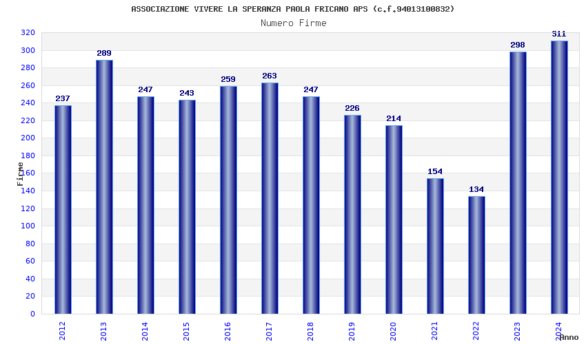 | Anno | Firme | Importi | Media | Naz. | Reg. | Prov. | Comu. |