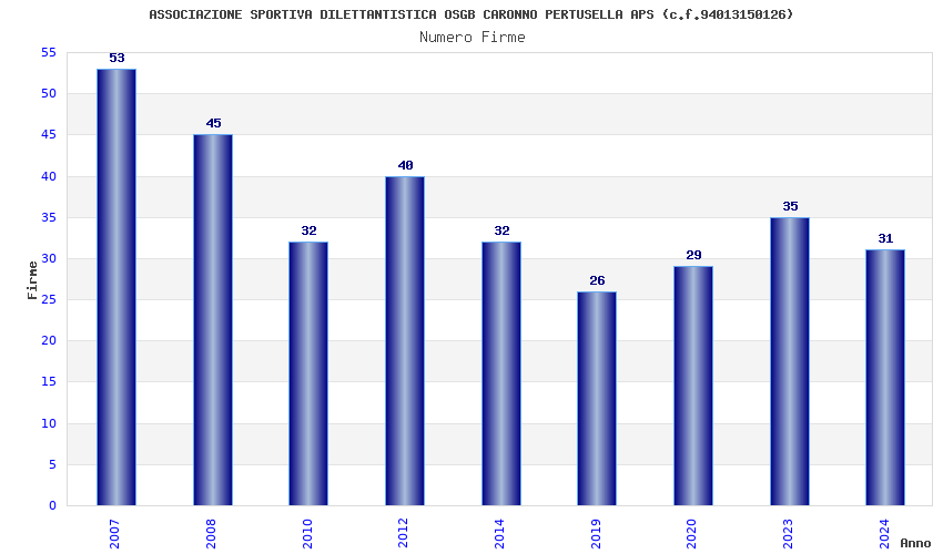| Anno | Firme | Importi | Media | Naz. | Reg. | Prov. | Comu. |
