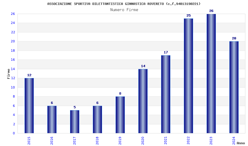 | Anno | Firme | Importi | Media | Naz. | Reg. | Prov. | Comu. |