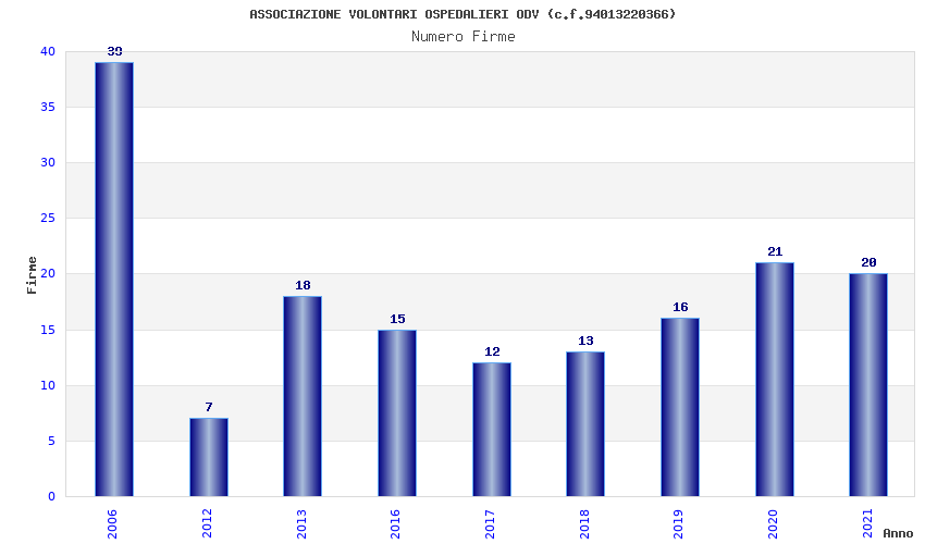 | Anno | Firme | Importi | Media | Naz. | Reg. | Prov. | Comu. |