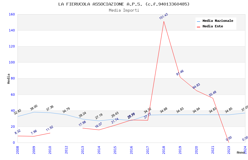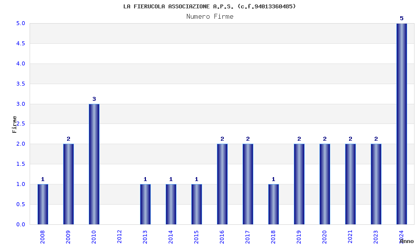 | Anno | Firme | Importi | Media | Naz. | Reg. | Prov. | Comu. |