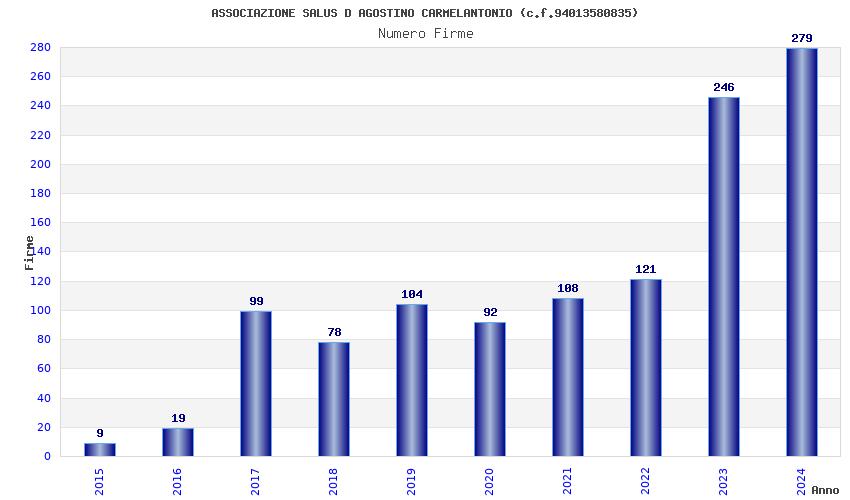 | Anno | Firme | Importi | Media | Naz. | Reg. | Prov. | Comu. |