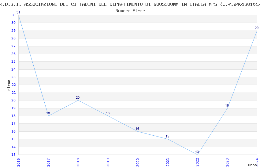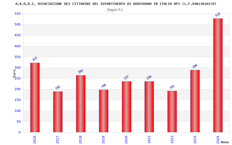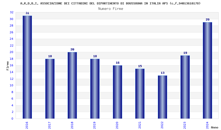| Anno | Firme | Importi | Media | Naz. | Reg. | Prov. | Comu. |