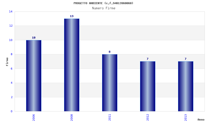 | Anno | Firme | Importi | Media | Naz. | Reg. | Prov. | Comu. |