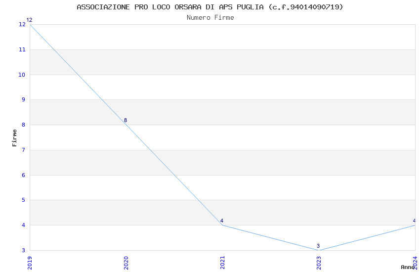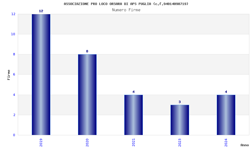 | Anno | Firme | Importi | Media | Naz. | Reg. | Prov. | Comu. |